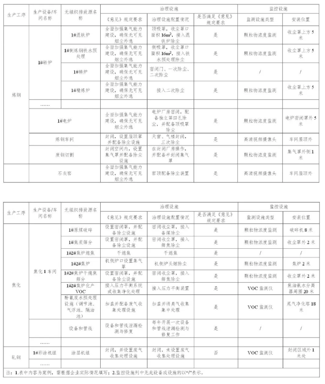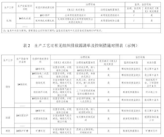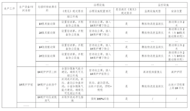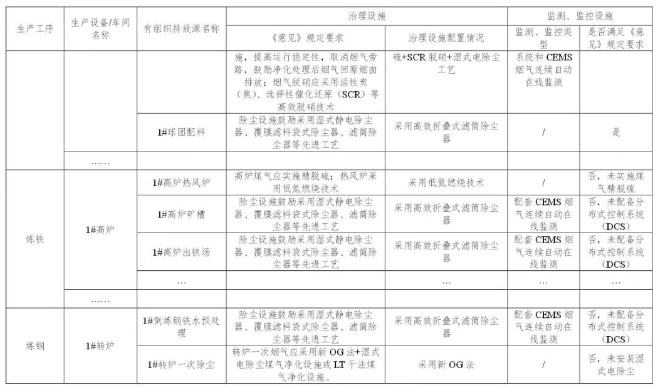 按照《意見》和《排污許可證申請(qǐng)與核發(fā)技術(shù)規(guī)范 鋼鐵行業(yè)》要求,對(duì)全廠相應(yīng)有組織排放源進(jìn)行全面排查,建立有組織排放源清單,明確治理技術(shù)路線和監(jiān)控措施,清單格式和內(nèi)容可參考附表1。