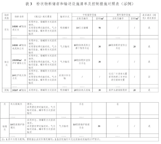 2.物料密閉儲(chǔ)存和密閉輸送清單。應(yīng)按照物料種類建立排放源與密閉儲(chǔ)存和輸送措施清單,同時(shí)健全各措施容積參數(shù)信息。